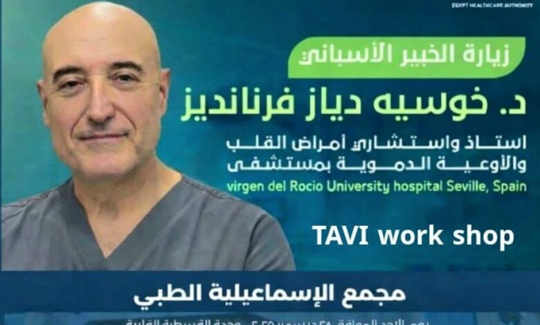 وأوضح الدكتور أحمد السبكي، رئيس مجلس إدارة الهيئة العامة للرعاية الصحية والمشرف العام على مشروع التأمين الصحي الشامل، أن برنامج الاستضافة يتضمن ورشة عمل مكثفة بعنوان: (TAVI: From Basic To Advanced) لتغيير الصمام الأورطي بالقسطرة، حيث يشمل البرنامج محاضرات نظرية متعمقة وتطبيق عملي مباشر لإجراء عمليات TAVI للحالات المستعصية، تحت إشراف الخبير الإسباني، بمشاركة نخبة من أطباء القلب التداخلي بمنطقة القناة، بهدف تعزيز مهارات الكوادر الطبية المصرية وتطوير مستوى الرعاية المتقدمة.