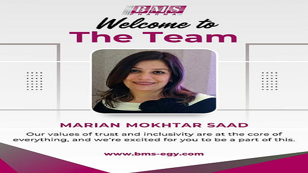 أعلنت شركة BMS Pharma عن انضمام الدكتورة ماريان مختار سعد إلى فريق عمل الشركة، لتتولى مهام مدير الشؤون الطبية والمناقصات (MA & Tender Manager)، وذلك في إطار خطة الشركة الاستراتيجية الهادفة إلى تعزيز الكفاءات القيادية ودعم منظومة العمل المؤسسي.