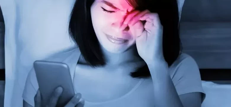 جفاف العين: انخفاض معدل الرمش أثناء استخدام الهاتف يقلل توزيع الدموع ويؤدي للشعور بالحرقان أو الدموع الزائدة.